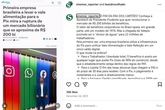 É nesse cenário que surge a Valepix, fintech brasileira liderada por Leandro Colhado, que promete transformar o vale-alimentação e refeição em um saldo digital via Pix, aceito em 98% dos comércios do país.
